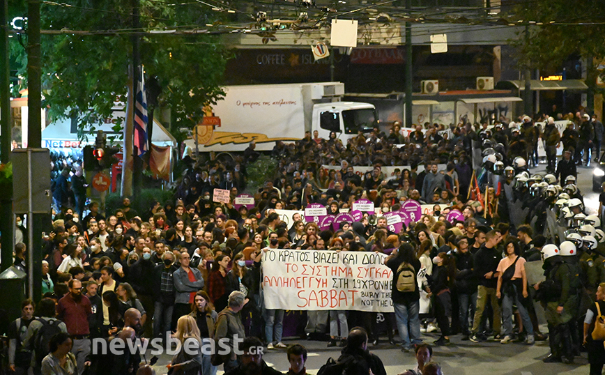 Η συγκέντρωση πραγματοποιήθηκε το απόγευμα της Δευτέρας (24/10), ενώ στο σημείο βρέθηκε ισχυρή αστυνομική παρουσία, όπως και δυνάμεις των ΜΑΤ.