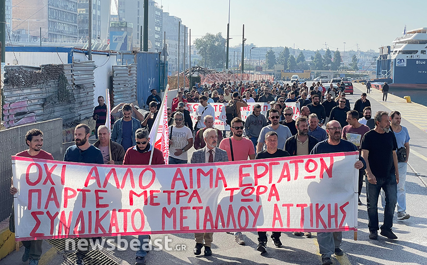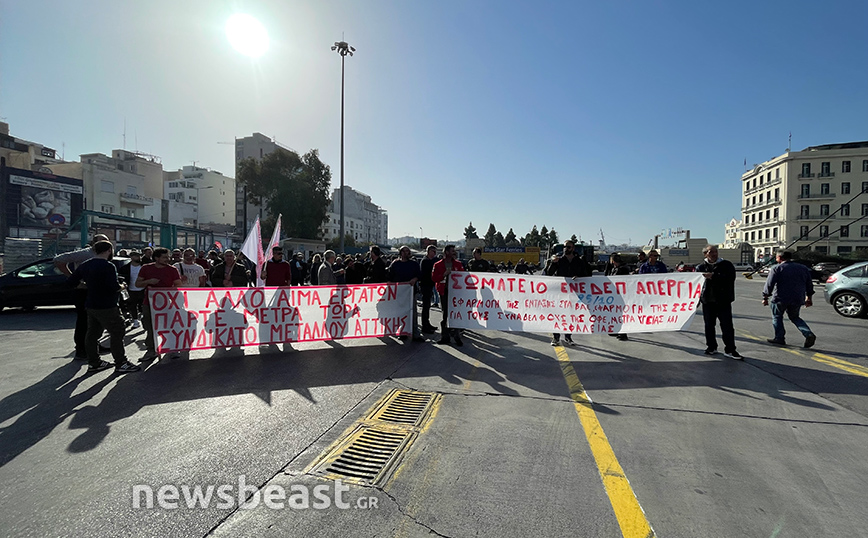 Νωρίτερα μέλη των σωματείων πραγματοποίησαν συγκέντρωση στην πλατεία Καραϊσκάκη και αυτή την ώρα γίνεται πορεία μέσα στο λιμάνι με προορισμό το υπουργείο Ναυτιλίας.