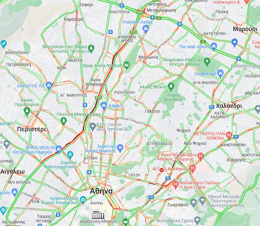 Ο χάρτης με την κίνηση τώρα στους δρόμους…