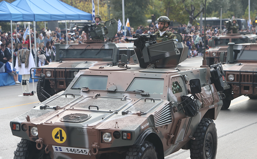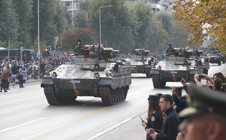 Τα νεοαποκτηθέντα γαλλικής κατασκευής μαχητικά αεροσκάφη Rafale και τα τεθωρακισμένα οχήματα μάχης Marder 1A3 και αναγνωρίσεως ΤΤΟΑ Μ1117 τράβηξαν τα βλέμματα του κοινού στη φετινή παρέλαση.