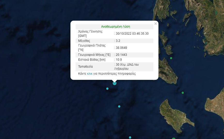 Σεισμική δόνηση μεγέθους 3,2 βαθμών της κλίμακας Ρίχτερ σημειώθηκε το πρωί της Κυριακής και πιο συγκεκριμένα στις 5:46 στον θαλάσσιο χώρο της Κεφαλονιάς.