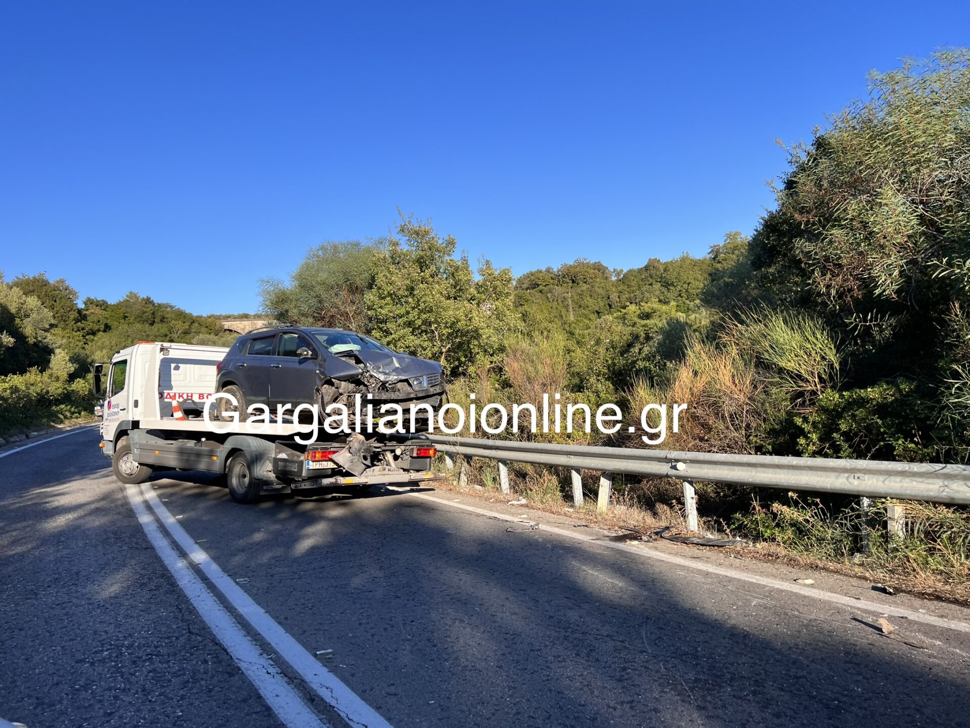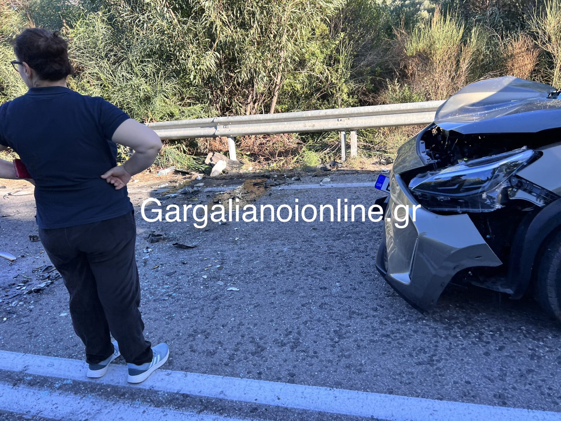 Σύμφωνα με το www.gargalianoionline.gr οδηγός οχήματος επιχείρησε να προσπεράσει και κάτω από άγνωστες συνθήκες συγκρούστηκε τόσο με το προπορευόμενο αυτοκίνητο όσο και με αυτοκίνητο που ερχόταν από αντίθετο ρεύμα.