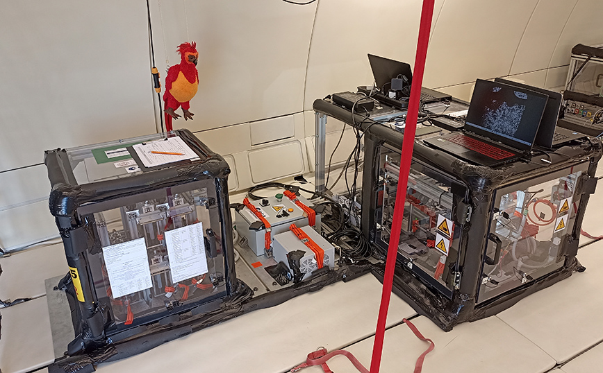 Το πείραμα «Low-g emulsions» ολοκληρώθηκε με επιτυχία στις 27 Οκτωβρίου. Πραγματοποιήθηκε στο πλαίσιο καμπάνιας Παραβολικών Πτήσεων του Ευρωπαϊκού Οργανισμού Διαστήματος και αφορούσε τη μελέτη φαινομένων που καθορίζουν τη σταθερότητα γαλακτωμάτων, τα οποία χρησιμοποιούνται ευρέως σε ποικίλες εφαρμογές (εντομοκτόνα, γυαλιστικά, λιπαντικά, χρώματα, βερνίκια αλλά και σε τρόφιμα, φάρμακα, φυτοφάρμακα).