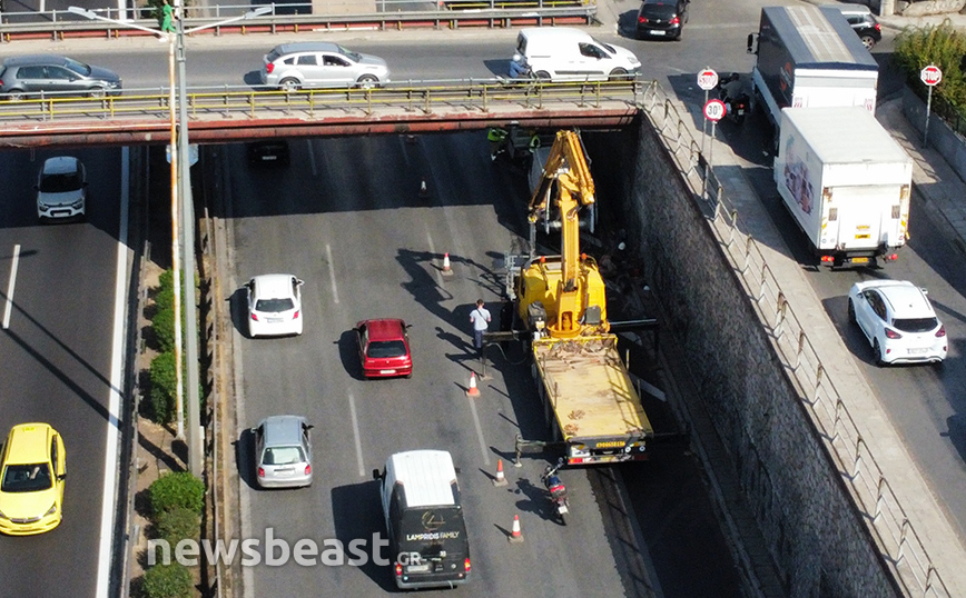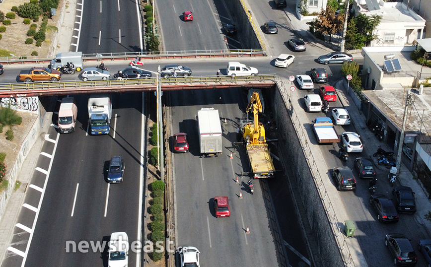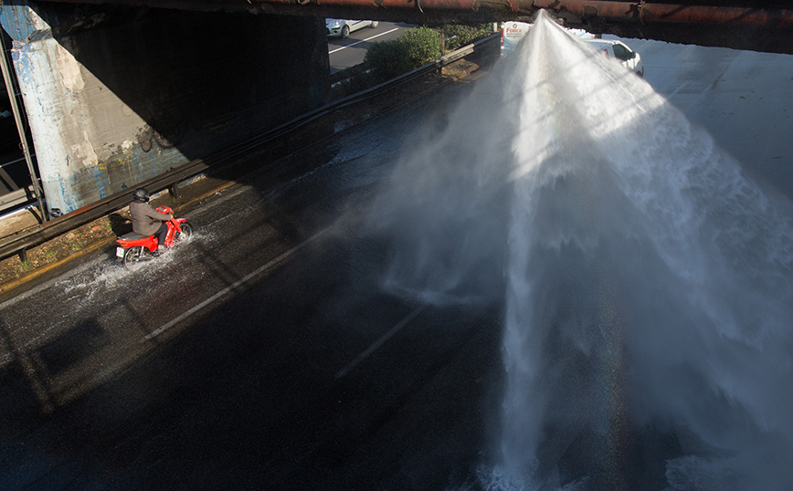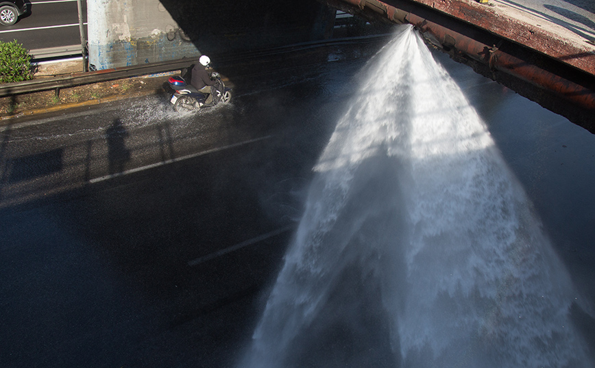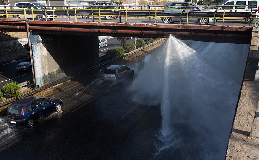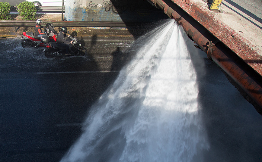 Αυτή την ώρα η ροή του νερού από τον αγωγό έχει σταματήσει. Στο σημείο γίνονται εργασίες επισκευής του αγωγού, με αποτέλεσμα η κυκλοφορία να διεξάγεται από δύο λωρίδες και να εξακολουθεί να υπάρχει μποτιλιάρισμα στο σημείο.