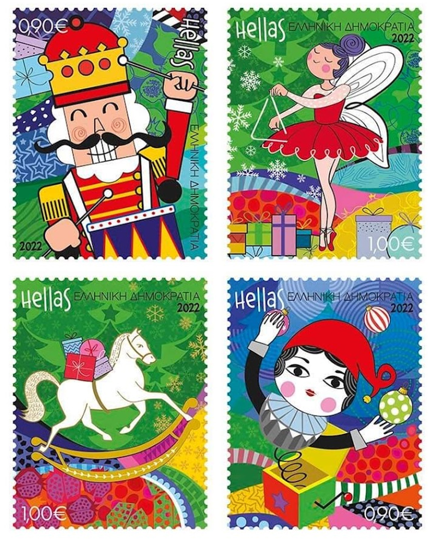 Ο Καρυοθραύστης είναι ο ήρωας του γνωστού χριστουγεννιάτικου παραμυθιού και συμβολικό στολίδι των Χριστουγέννων παγκοσμίως. Στο γνωστό χριστουγεννιάτικο παραμύθι του Καρυοθραύστη, την παραμονή των Χριστουγέννων όλα τα παιδικά παιχνίδια ζωντανεύουν και ενώνονται σε μία μάχη απέναντι στην ομάδα των ποντικιών. Με αυτήν την έμπνευση, τα εφετινά γραμματόσημα, εκτός από τον Καρυοθραύστη, απεικονίζουν αγαπημένα παιδικά παιχνίδια: Η Μπαλαρίνα ψάλει τα κάλαντα με το χαρακτηριστικό χριστουγεννιάτικο τρίγωνο, ο Αρλεκίνος πετάγεται από το μουσικό κουτί κρατώντας χριστουγεννιάτικα στολίδια και το Κουνιστό Αλογάκι μεταφέρει στην πλάτη τα δώρα.