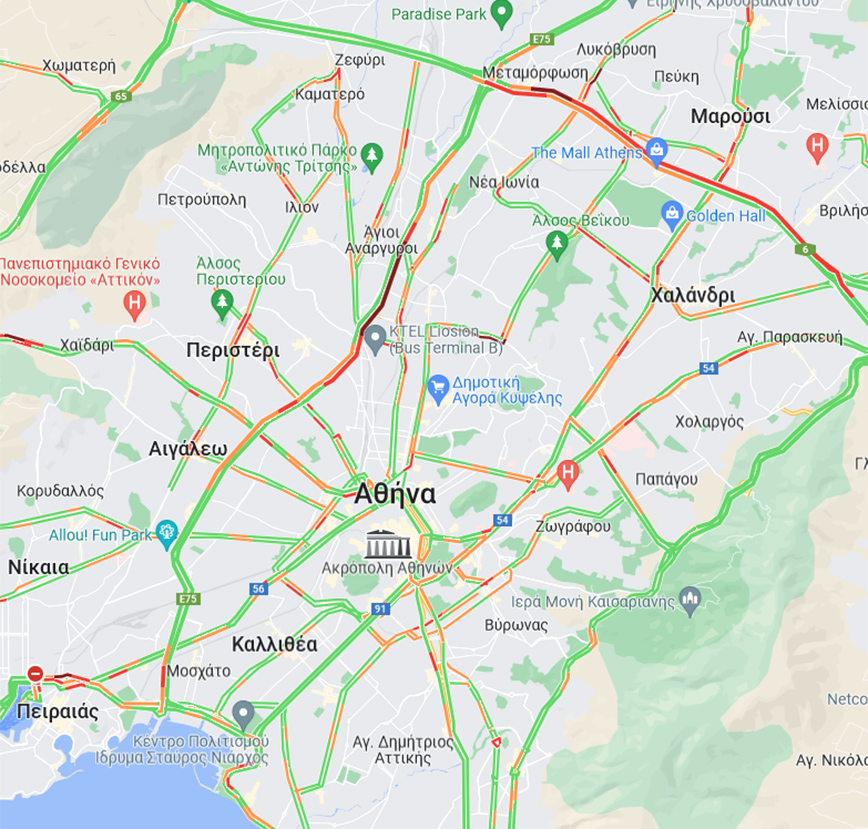 Σύμφωνα με την τροχαία Αττικής, προβλήματα υπάρχουν αυτή την ώρα στα εξής σημεία: