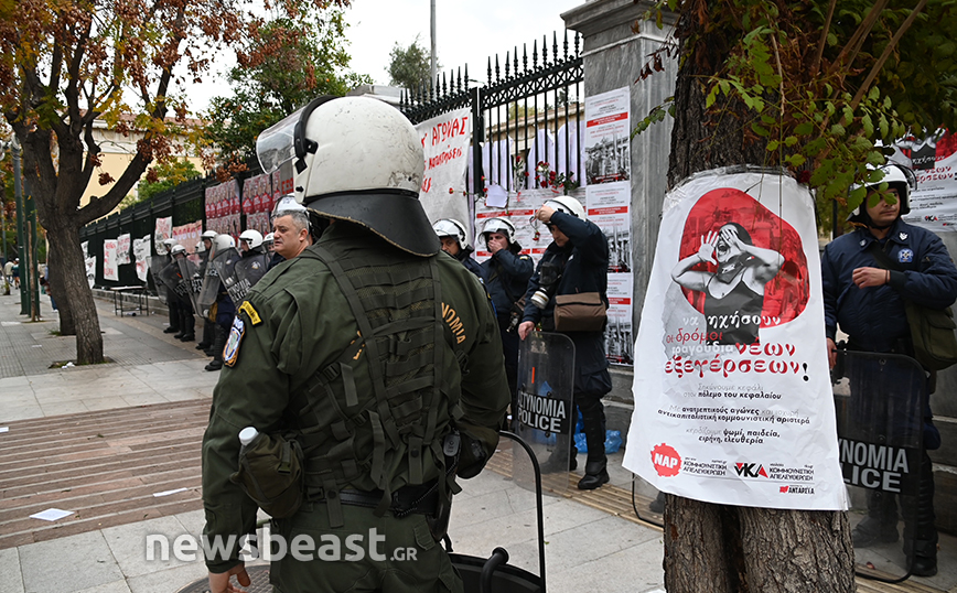 Φοιτητικοί σύλλογοι με σύνθημα «οι εξεγέρσεις δεν μπαίνουν στα μουσεία, εμπρός για της γενιάς μας τα Πολυτεχνεία», φορείς, ο ΣΥΡΙΖΑ, το ΠΑΣΟΚ- ΚΙΝΑΛ, το ΜέΡΑ 25, κόμματα κι οργανώσεις της εξωκοινοβουλευτικής αριστεράς, εργατικά σωματεία και συλλογικότητες του αντιεξουσιαστικού χώρου συγκεντρώθηκαν στην Πλατεία Κλαυθμώνος και κατευθύνονται προς την αμερικάνικη πρεσβεία.