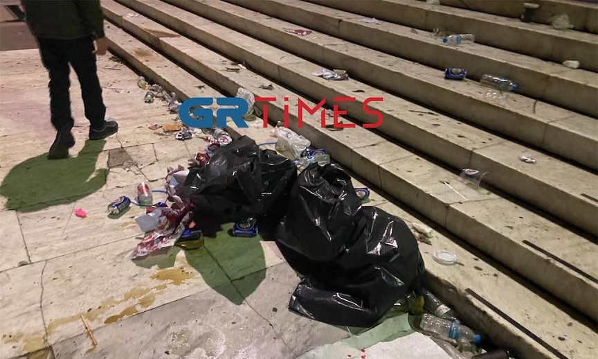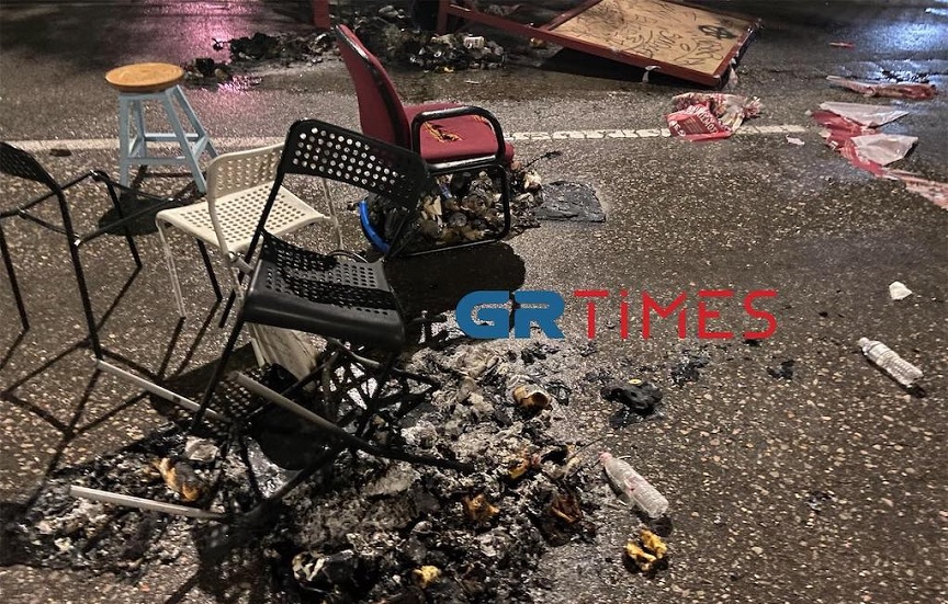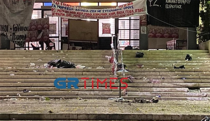 Μεγάλες υλικές ζημιές καταγράφονται στο προαύλιο της Πολυτεχνικής Σχολής του ΑΠΘ έπειτα από τα εκτεταμένα επεισόδια που σημειώθηκαν στο σημείο και στον περιβάλλοντα χώρο του Αριστοτελείου Πανεπιστημίου στη Θεσσαλονίκη.