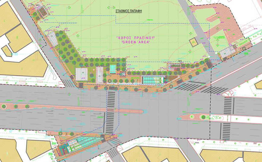 Ο κεντρικός πυρήνας του σταθμού, όπως μεταδίδει το Αθηναϊκό Πρακτορείο Ειδήσεων, επενδύθηκε με αναρτημένα πάνελ αλουμινίου τυπικών διαστάσεων, διαφορετικού χρώματος ανά σταθμό. Όλα τα στηθαία γύρω από τον κεντρικό πυρήνα, είναι γυάλινα με ανοξείδωτα στηρίγματα και με ανοξείδωτο χειρολισθήρα. Την προμελέτη του Σταθμού Παπάφη εκπόνησε η αρχιτέκτων Χρυσούλα Κουστένη και την οριστική μελέτη όπως και τη μελέτη εφαρμογής η αρχιτέκτων Μαρία Μαγγιώρου.