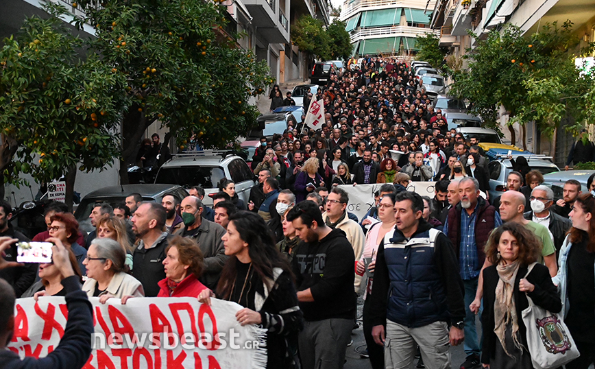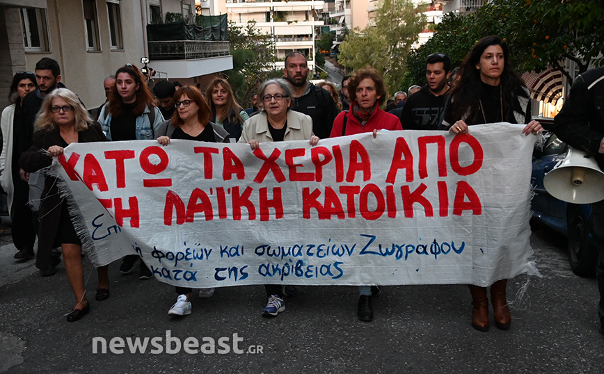 Κρατώντας πανό και πλακάτ και με συνθήματα όπως «κάτω τα χέρια από τη λαϊκή κατοικία», έγινε πορεία στα γύρω στενά και δρόμους.