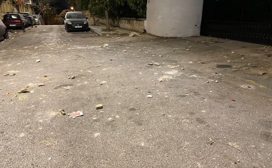 Οι φωτογραφίες του Newsbeast από το σημείο είναι αποκαλυπτικές και παρουσιάζουν μια εικόνα καταστροφής με σταθμευμένα αυτοκίνητα να έχουν υποστεί υλικές ζημιές και σπασμένες πέτρες να βρίσκονται πεταμένες στο δρόμος επί της οδού Τριχωνίδος όπου έγινε η επιχείρηση.