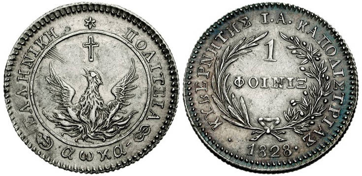 1828: Ιδρύεται η Εθνική Χρηματιστική Τράπεζα, μετέπειτα Εθνική Τράπεζα, και καθιερώνεται ο Φοίνικας ως εθνικό νόμισμα.