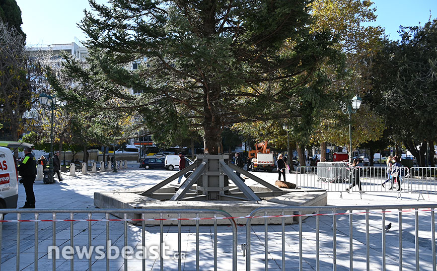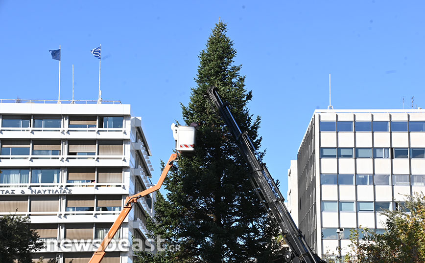 Χριστούγεννα αρχίζουν να «μυρίζουν» στο κέντρο της Αθήνας όπου το πρωί της Παρασκευής (25/11) στήθηκε το χριστουγεννιάτικο δέντρο στην πλατεία Συντάγματος.