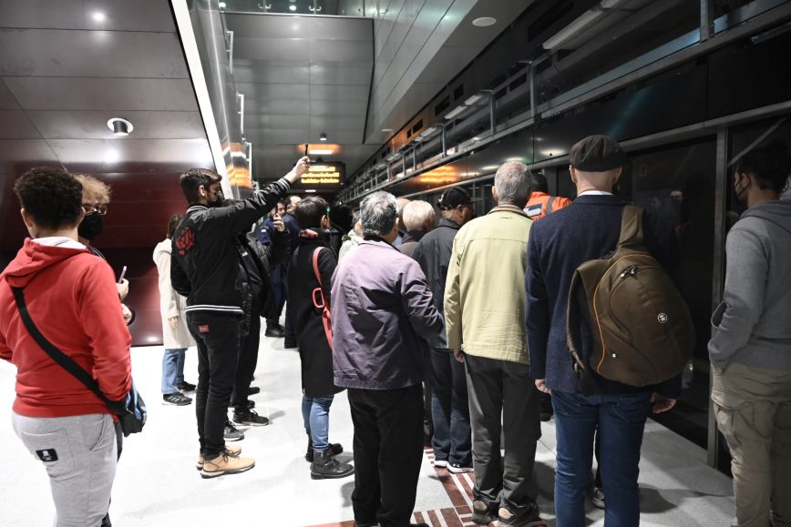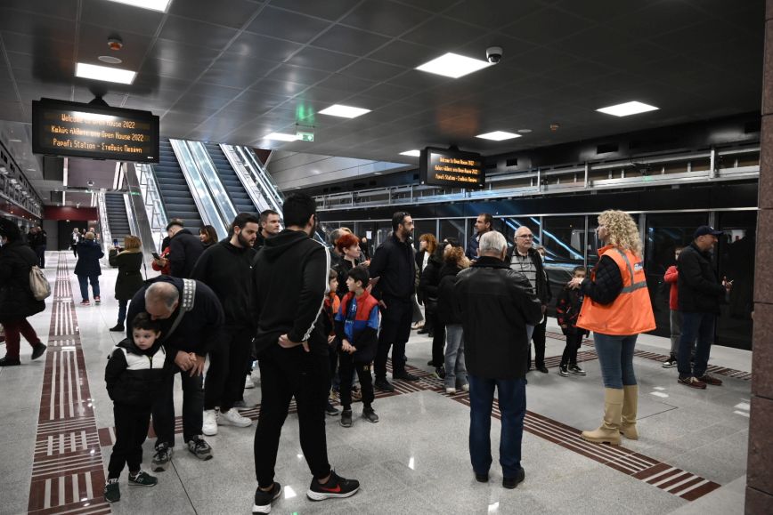 Μάλιστα, ο πρόεδρος της Αττικό Μετρό, Νίκος Ταχιάος, υποδέχθηκε τους πρώτους επισκέπτες λίγο μετά τις 10:00, τους ξενάγησε στον σταθμό και απάντησε στις ερωτήσεις τους.