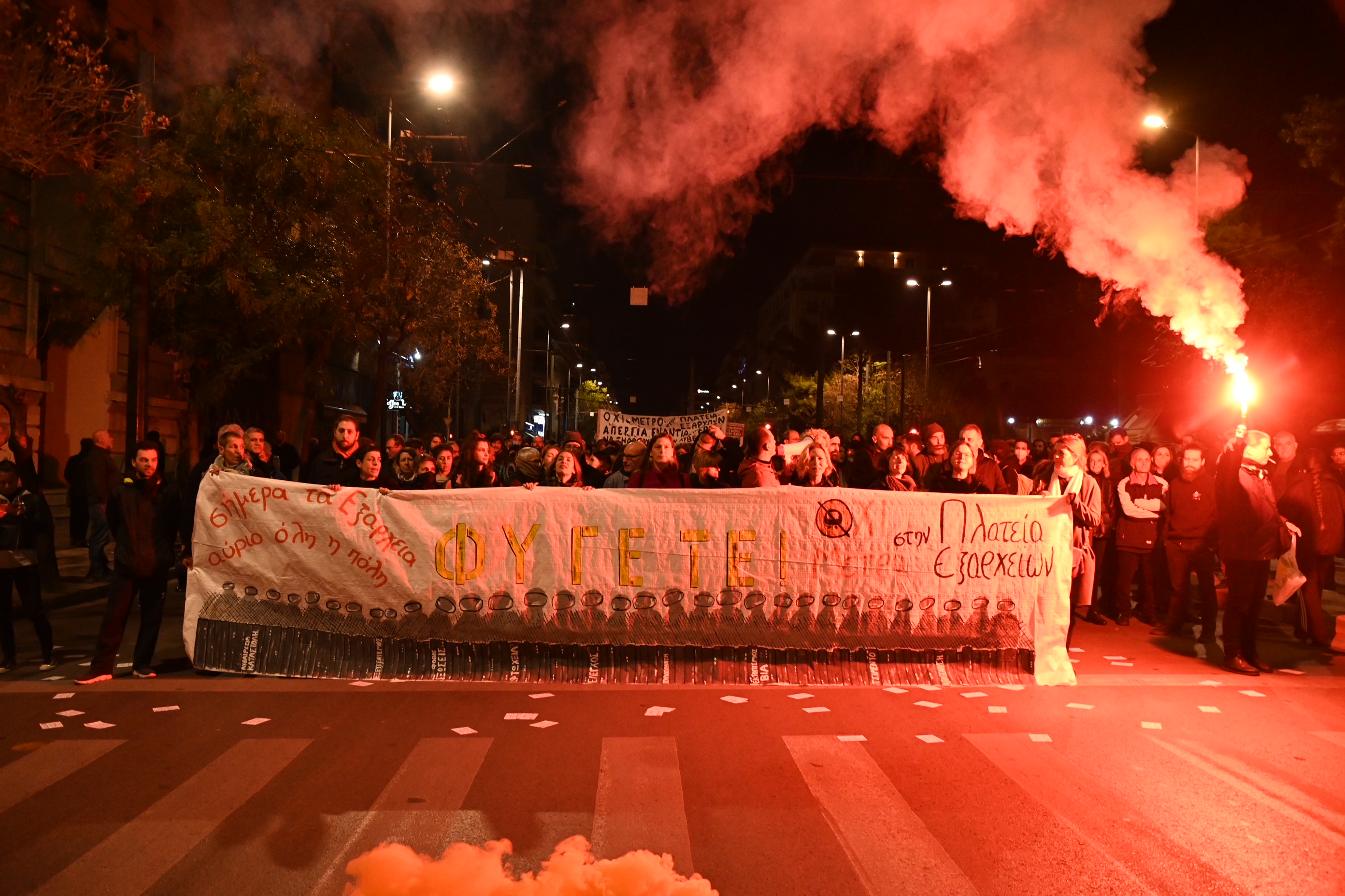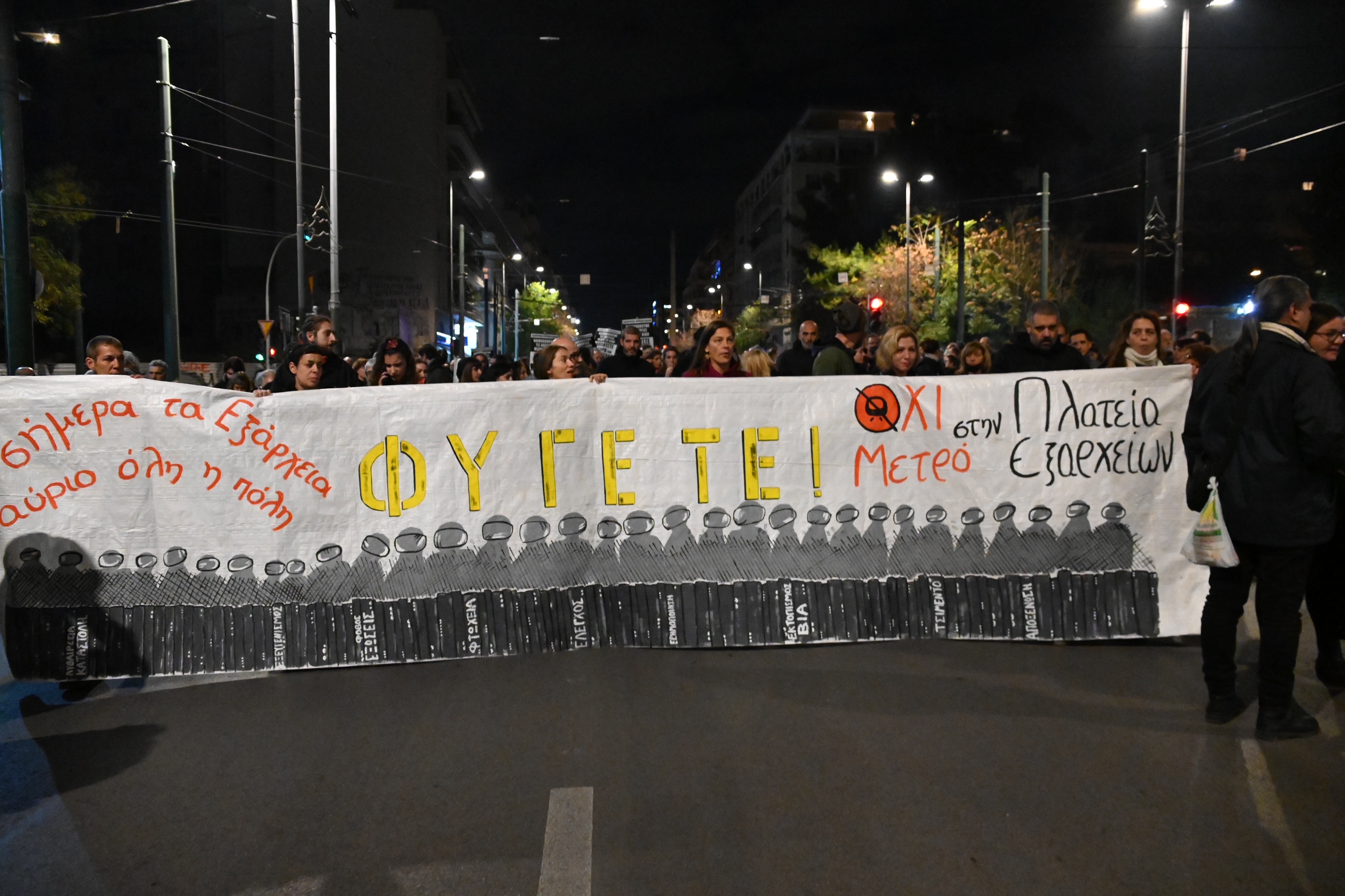 Πορεία πραγματοποιείται αυτήν την ώρα στην περιοχή των Εξαρχείων κατά της δημιουργίας σταθμού Μετρό στην περιοχή.