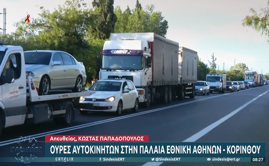 Ουρές σχηματίζουν τα οχήματα στην παλαιά εθνική οδό Αθηνών – Κορίνθου, καθώς έκλεισε η νέα εθνική οδός στο ρεύμα προς Αθήνα, λόγω κατολίσθησης βράχων, που σημειώθηκε τα ξημερώματα της Πέμπτης, στο 48,5 χιλιόμετρο στο ύψος των Μεγάρων.