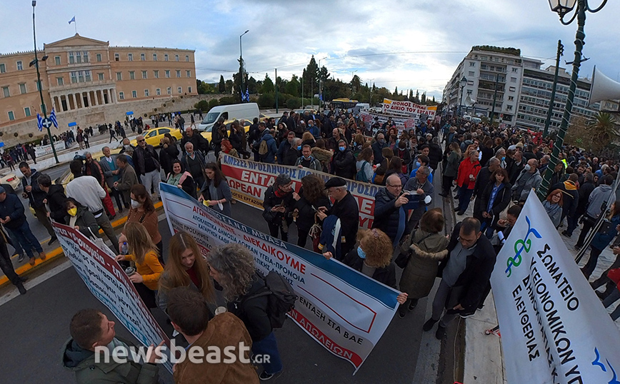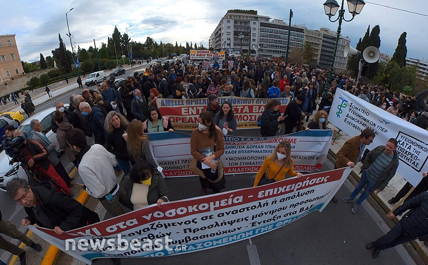 Γιατροί και νοσηλευτές του ΕΣΥ πραγματοποιούν αυτή την ώρα συγκέντρωση στην πλατεία Συντάγματος, διαμαρτυρόμενοι για το νομοσχέδιο για τη δευτεροβάθμια περίθαλψη, που συζητείται αυτή την ώρα στη Βουλή.