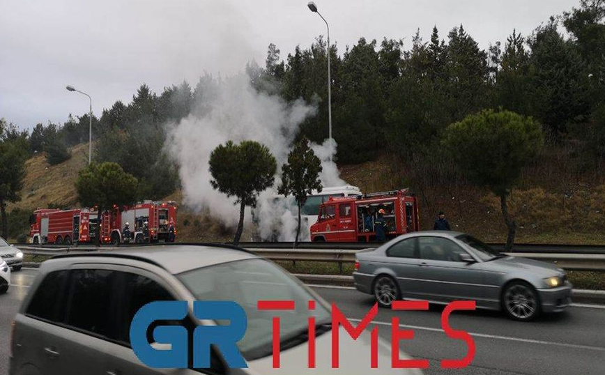 Το όχημα βρισκόταν στην περιφερειακή οδό με κατεύθυνση προς δυτικά, μετά τον κόμβο Κατσιμίδη. Το όχημα ακινητοποιήθηκε και εκκενώθηκε. Τα παιδιά έχουν απομακρυνθεί και βρίσκονται πίσω από τις προστατευτικές μπάρες επί της περιφερειακής οδούς.