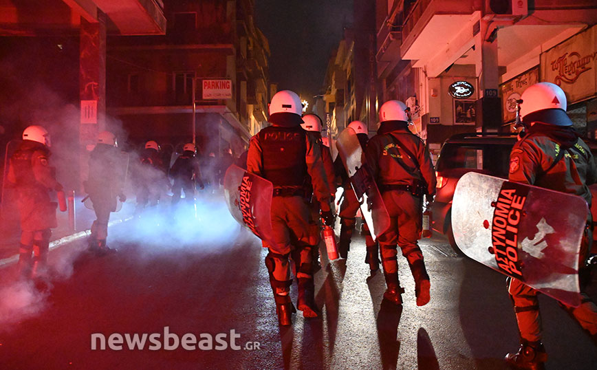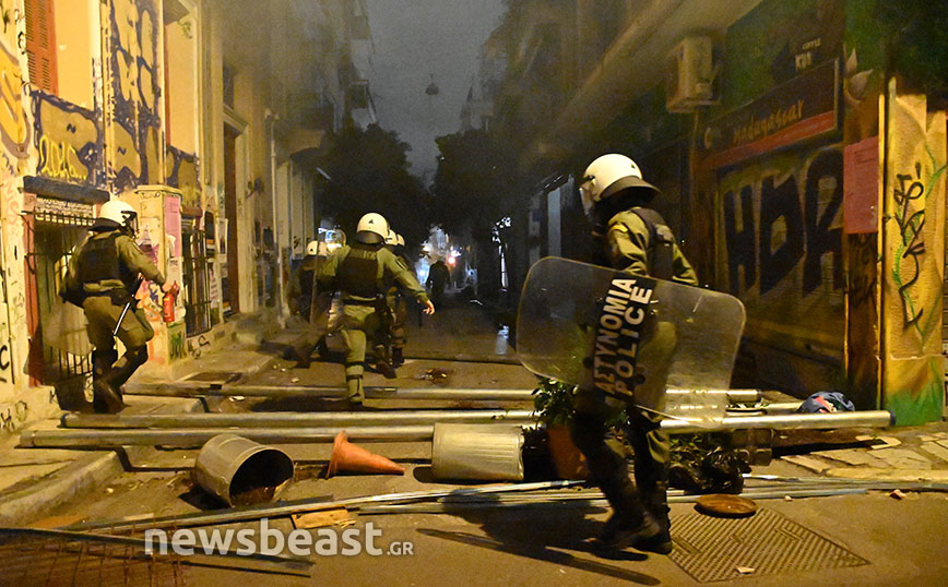 Ισχυρές δυνάμεις των ΜΑΤ έκαναν χρήση χημικών και καταδίωξαν τους νεαρούς, ενώ έγιναν και προσαγωγές.