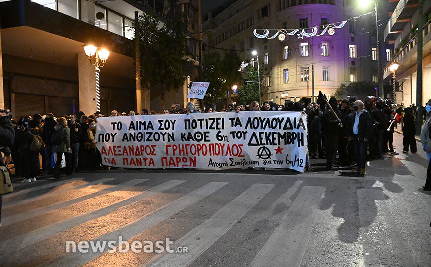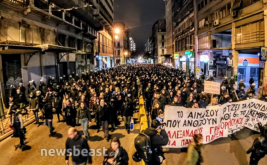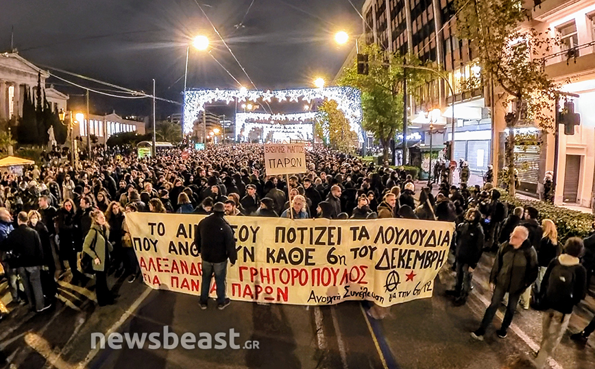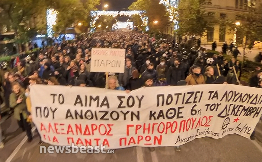 Ο παλμός δόθηκε από το κεντρικό σύνθημα «το αίμα σου ποτίζει τα λουλούδια που ανθίζουν κάθε 6η Δεκέμβρη. Αλέξανδρος Γρηγορόπουλος για πάντα παρών» και σύμφωνα με τις αρχές χιλιάδες πήραν μέρος στη διαδήλωση.