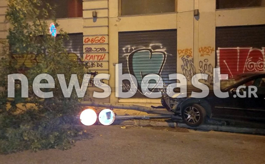 Ένα απίστευτο τροχαίο σημειώθηκε τα ξημερώματα της Τετάρτης (7/12) στην οδό Μπενάκη στο κέντρο της Αθήνας και συγκεκριμένα στην αρχή των Εξαρχείων. Από άγνωστη μέχρι στιγμής αιτία ο οδηγός ενός μεγάλου και πολυτελούς Ι.Χ. αυτοκινήτου έχασε τον έλεγχο κι αυτό «καρφώθηκε» σε ένα δέντρο και μία πινακίδα με σήμα του ΚΟΚ που βρίσκονταν πάνω στο πεζοδρόμιο.