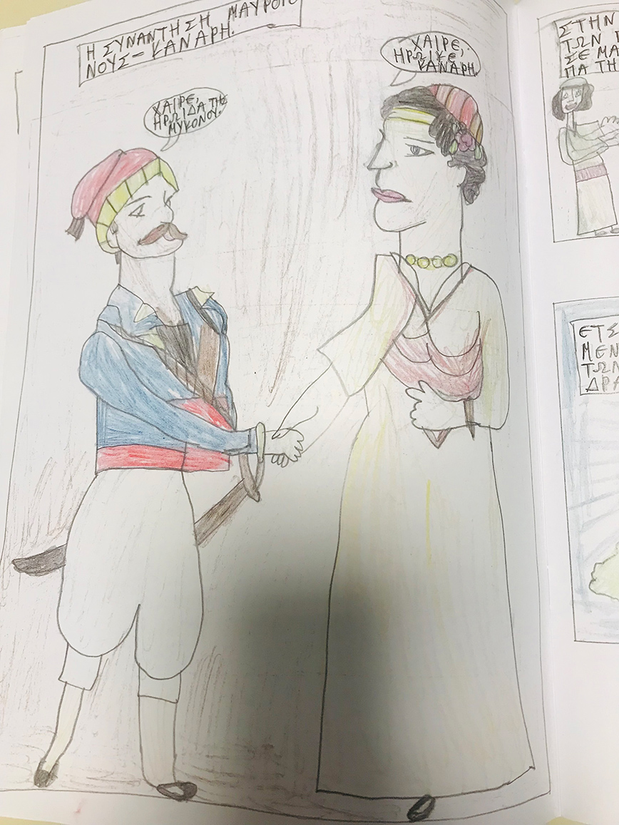 «”Μια κόρη απλή, μεγαλωμένη σ’ ένα βράχο, θρεμμένη μέσα στη θλίψη, μη αναπνέοντας παρά τον αέρα του πατριωτισμού”- έτσι περιγράφει τον εαυτό της η Μαντώ Μαυρογένους σε μια επιστολή της προς τις Παρισινές κυρίες. Εμένα με συγκλόνισε η απόλυτη στάση της να συμβάλει στον αγώνα μια όμορφη και πλούσια γυναίκα, που μπήκε στον αγώνα του 1821, δίνοντας τα πάντα. Πιστεύω πως μπορούμε να διδαχτούμε πολλά από αυτήν» αναφέρει χαρακτηριστικά η Νικολέτα, που με τη δημιουργία της θέλει να φέρει μικρούς και μεγάλους κοντά στη μεγάλη ηρωίδα, αφηγούμενη τη ζωή της μέσα από τις εικόνες και τις λεζάντες ενός κόμικ.