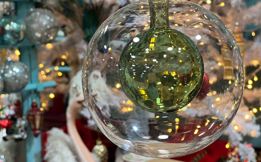 Ένα μοναδικό χριστουγεννιάτικο ταξίδι προσφέρει ένα μικρό, υπόγειο κατάστημα που βρίσκεται στην «καρδιά» της Θεσσαλονίκης και είναι γεμάτο με πολύχρωμες εντυπωσιακές μπάλες από φυσητό γυαλί, περίτεχνα διακοσμημένες, παραδοσιακά τρενάκια, Αη Βασίληδες, χιονισμένα έλατα και πρωτότυπα vintage σχέδια χριστουγεννιάτικων στολιδιών.