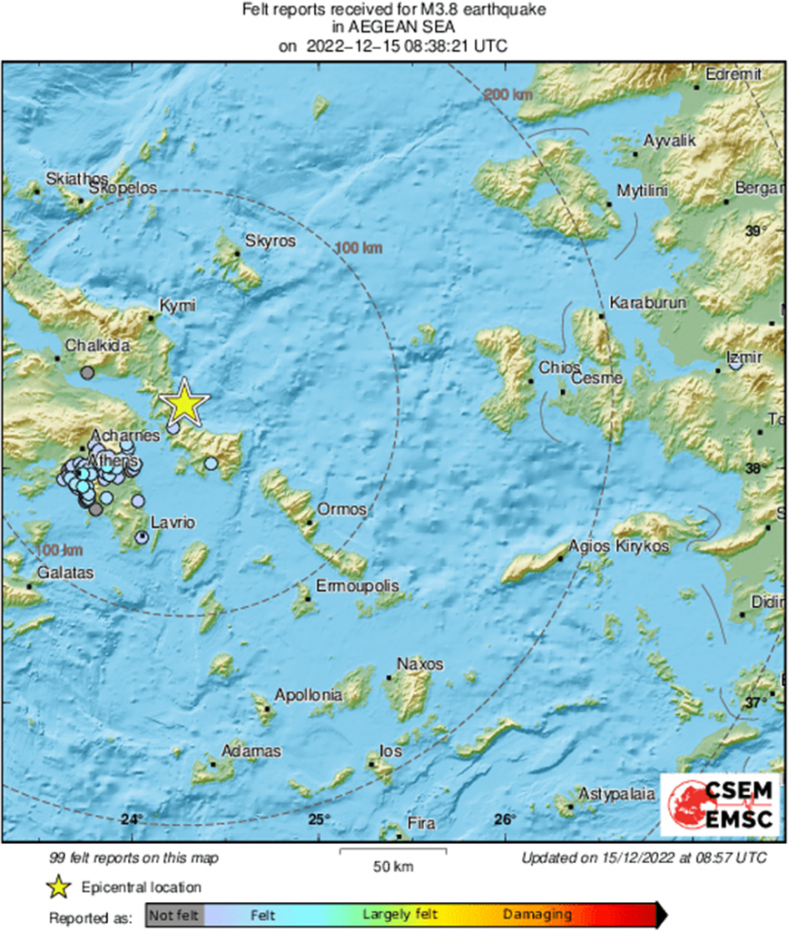 Το Ευρωμεσογειακό Σεισμολογικό Ινστιτούτο υπολόγισε τη σεισμική δόνηση στα 3,8 Ρίχτερ.