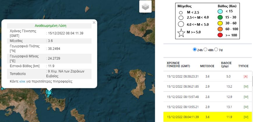 Προηγήθηκαν άλλες τέσσερις δονήσεις 2,9, 2,8, 2,9 και 3,6 Ρίχτερ.