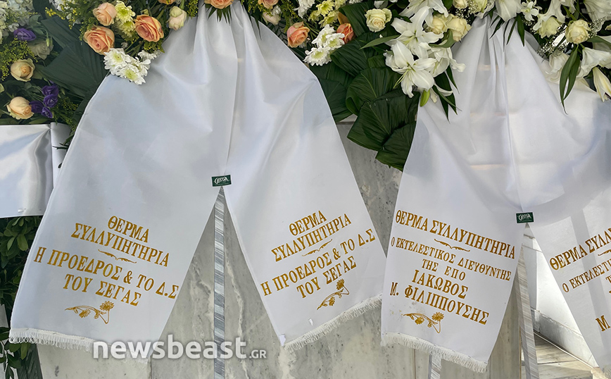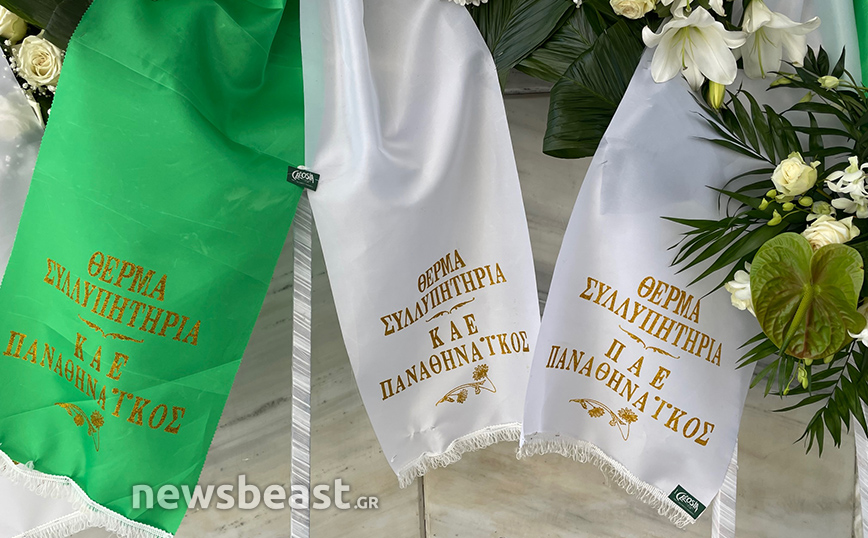 Στεφάνια μεταξύ άλλων έστειλαν η ΠΑΕ-ΠΑΟΚ, η ΠΑΕ ΑΕΚ, το ΔΣ του Παναθηναϊού, ο Ντούσαν Μπάγεβιτς, ο Ιβάν Σαββίδης, ο Βαγγέλης Μαρινάκης, οι εφημερίδες Βήμα και Νέα, η Super League και ο Λευτέρης Αυγενάκης.