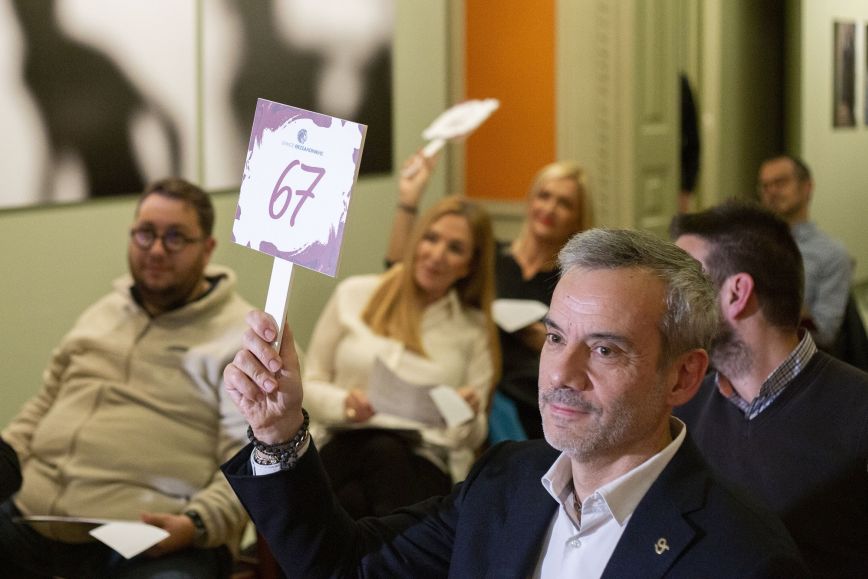 Τη διαδικασία της δημοπρασίας ανέλαβε η Διευθύντρια Μάρκετινγκ και Επικοινωνίας της Ένωσης «Οινοποιοί Βορείου Ελλάδος» Αλεξάνδρα Ανθίδου. Πληροφορίες για τα έργα που κοσμούν τις φιάλες παρουσίασε η Προϊσταμένη της Δημοτικής Πινακοθήκης Μαργαρίτα Σαλπιγγίδου.