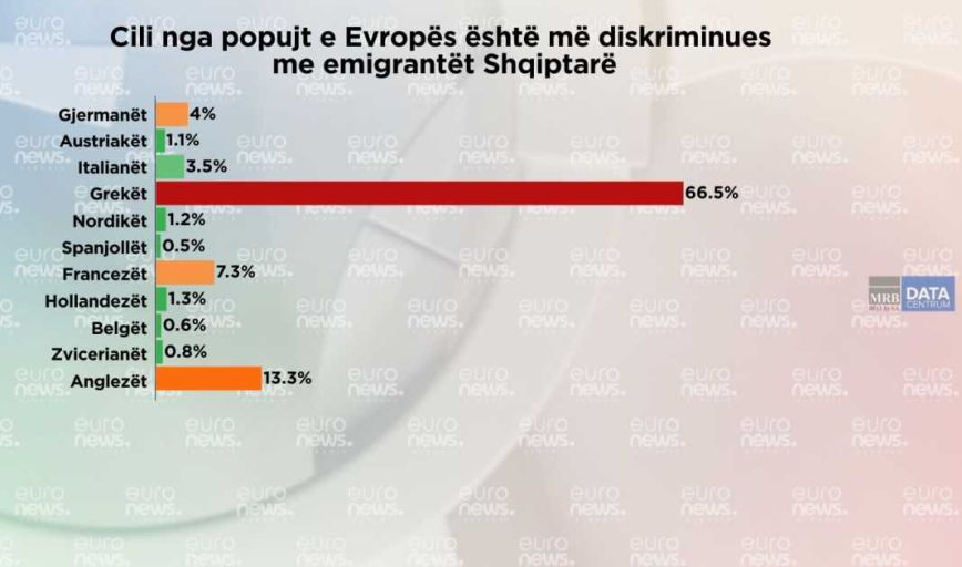 Συγκεκριμένα, μπορεί το 66,5% να θεωρεί ότι οι Έλληνες είναι ο λαός που κάνει τις περισσότερες διακρίσεις απέναντι τους, όμως το 45,4% απάντησε ότι πιστεύουν ότι έχουν πολλές ομοιότητες με το ελληνικό έθνος, ενώ στη δεύτερη θέση είναι οι Ιταλοί με 34,9%.