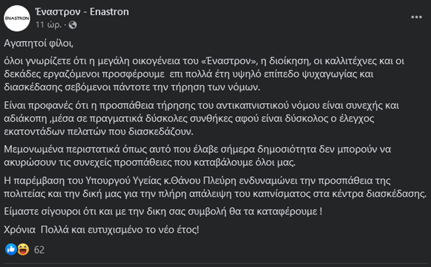 Αναλυτικά η ανάρτηση του Έναστρον: