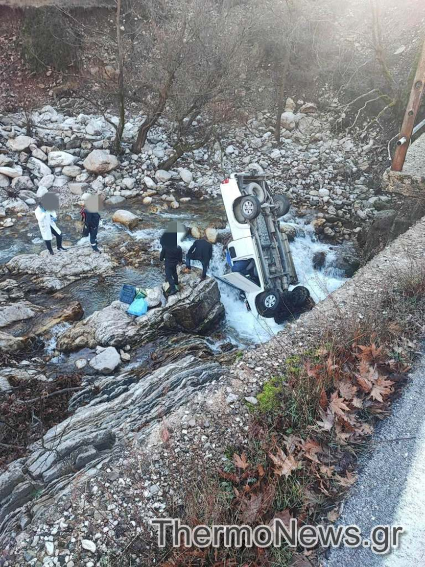 Σοβαρό τροχαίο ατύχημα σημειώθηκε σήμερα το πρωί όταν αγροτικό αυτοκίνητο στο οποίο επέβαιναν δύο άτομα, έπεσε σε ποτάμι στην επαρχιακή οδό Αγρινίου-Προυσού, συγκεκριμένα στο τμήμα του δρόμου από Καλλιθέα προς Λαμπίρι.