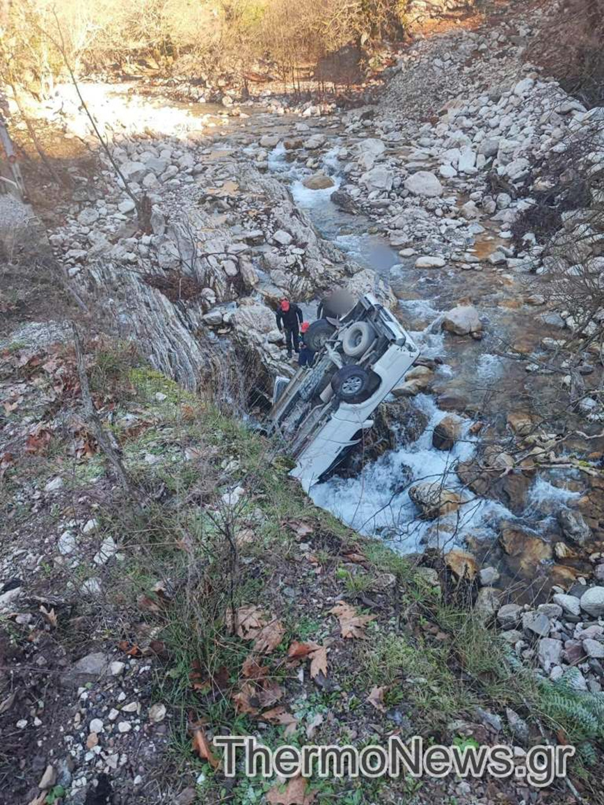 Ο οδηγός έχασε τον έλεγχο του αγροτικού, λόγω της ολισθηρότητας του οδοστρώματος και κατέληξε στο ποτάμι.