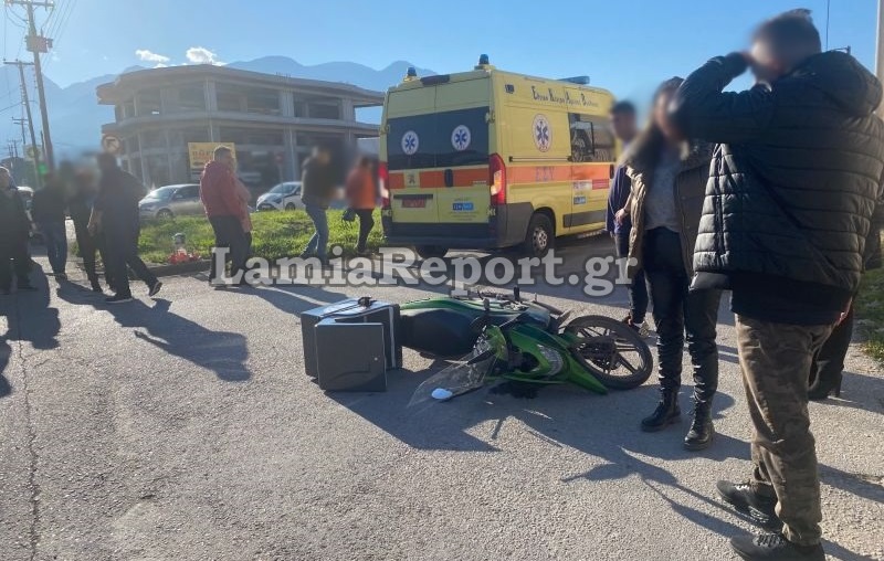 Τροχαίο ατύχημα έγινε το μεσημέρι του Σαββάτου στη συμβολη των οδών Φραντζή και Λ. Ελευθερίας, στο Παγκράτι Λαμίας, όταν το μηχανάκι νεαρού ντελιβερά συγκρούστηκε με αυτοκίνητο