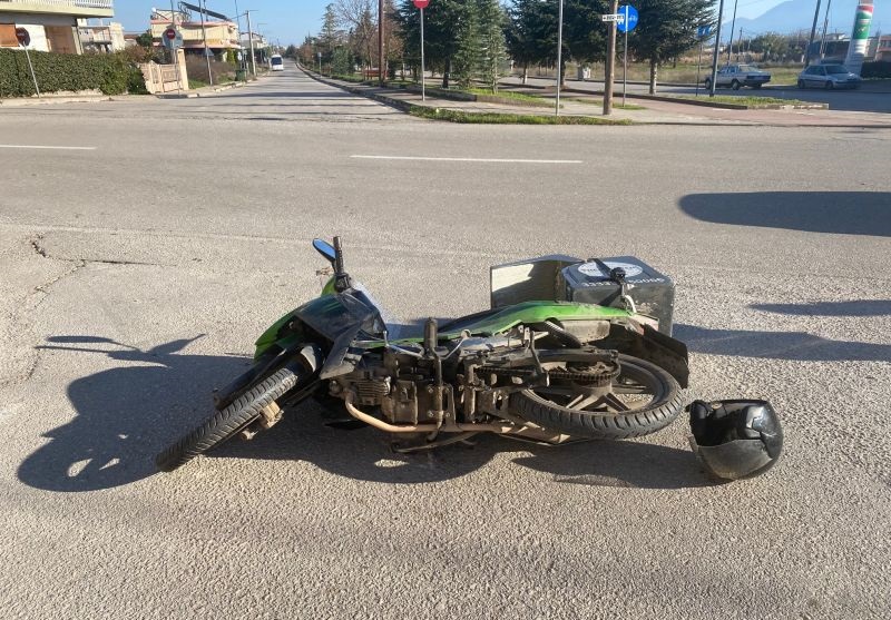 Από τη σύγκρουση ο ντελιβεράς τραυματίστηκε, ωστόσο γλίτωσε τα χειρότερα επειδή φορούσε κράνος.