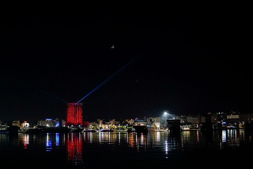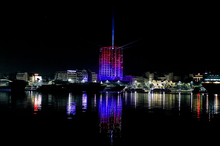 Αμέσως μετά την έλευση του 2023, δόθηκε το σύνθημα της αντίστροφης μέτρησης από τον φωταγωγημένο Πύργο του Πειραιά και άμεσα τo δεύτερο ψηλότερο κτήριο στην Ελλάδα «πλημμύρισε» με φως σε μια ξεχωριστή φωτιστική εγκατάσταση με εναλλασσόμενα χρώματα και ρυθμό.