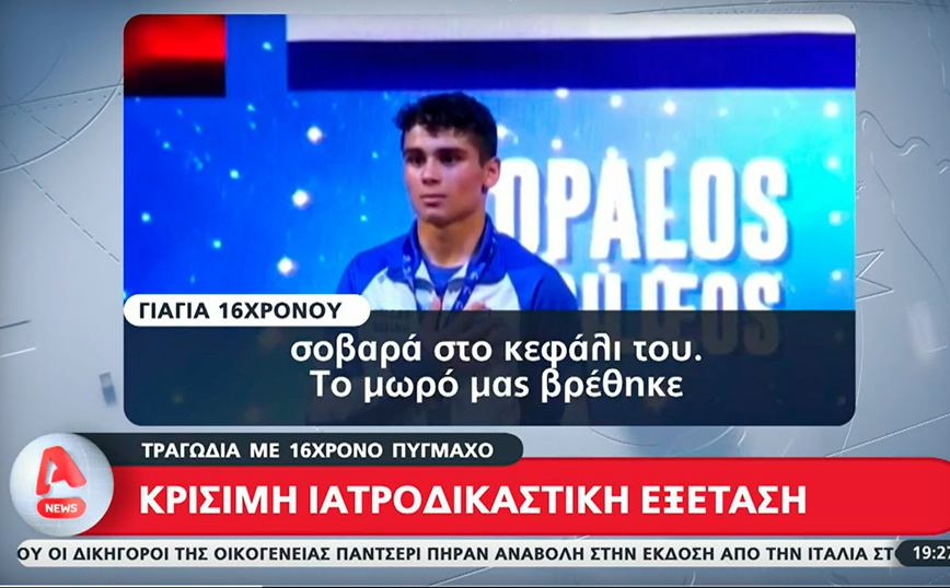 Η γιαγιά του 16χρονου πρωταθλητή πυγμαχίας, μίλησε στο κεντρικό δελτίο ειδήσεων του Alpha και τόνισε πως ο εγγονός της έπαιξε σε άλλη κατηγορία από αυτή που ταίριαζε στην ηλικία και τα κιλά του.