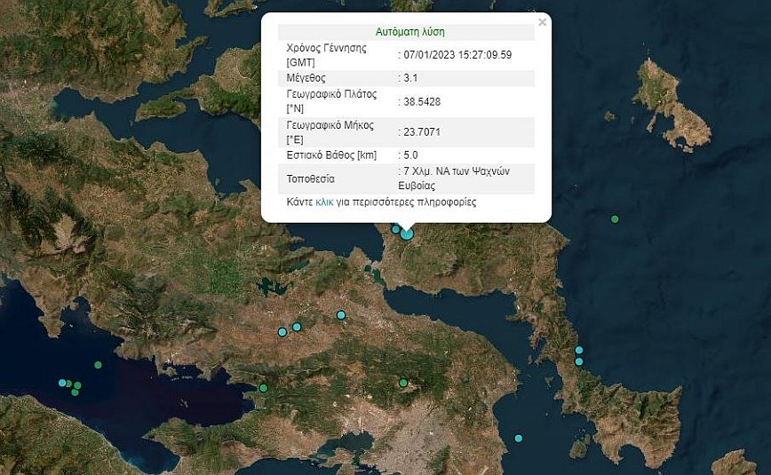 Μια ακόμα δόνηση ταρακούνησε τους κατοίκους της Εύβοιας. Σύμφωνα με την αυτόματη λύση του Γεωδυναμικού Ινστιτούτου Αθηνών, ο σεισμός ήταν 3,1 Ρίχτερ και είχε επίκεντρο 7 χλμ νοτιοανατολικά της πόλης των Ψαχνών.