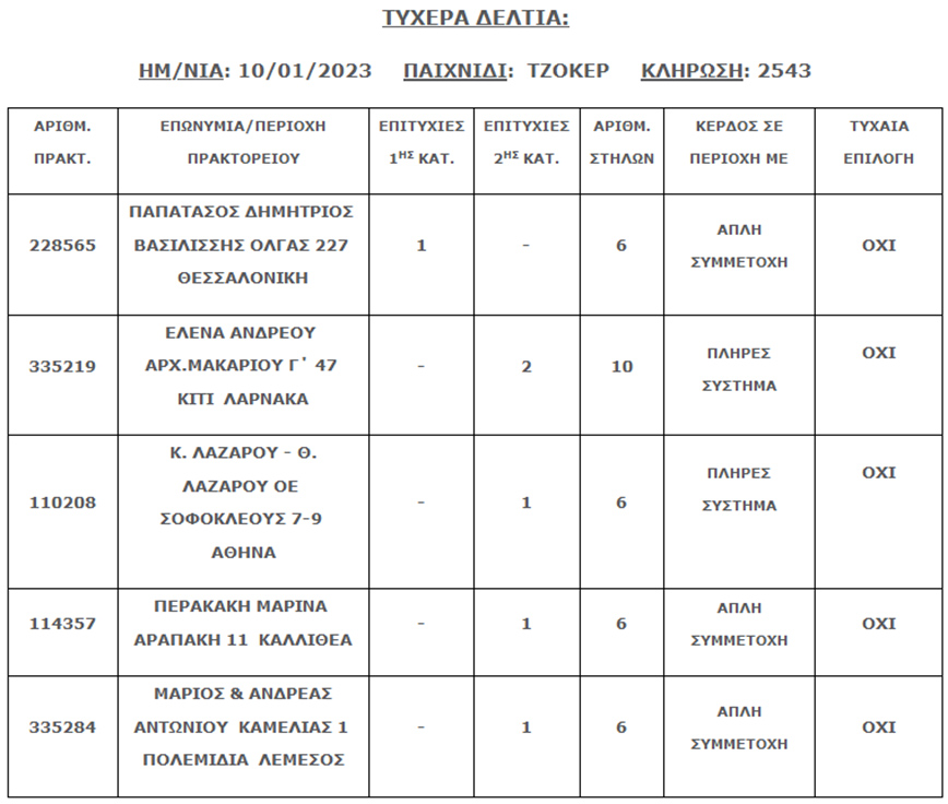 Το ποσό που θα μοιραστούν οι τυχεροί της 1ης κατηγορίας στην επόμενη κλήρωση της Πέμπτης 12/01/2023 είναι 600.000 ευρώ τουλάχιστον.