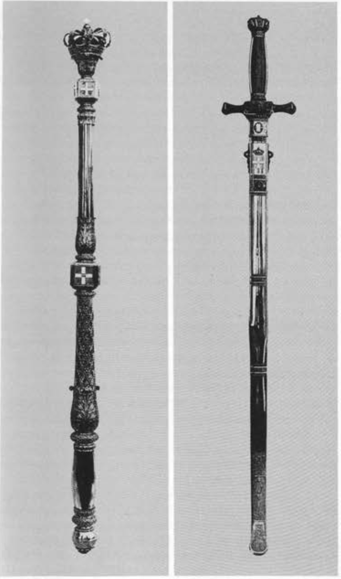 Στον πολυσέλιδο κατάλογο αυτής της έκθεσης υπήρχαν και τρεις ασπρόμαυρες φωτογραφίες, η μια εκ των οποίων έδειχνε το στέμμα, η άλλη το σκήπτρο και η τρίτη το ξίφος, όλες με την ασυνήθιστη ένδειξη ότι είναι «άγνωστος ο τόπος φύλαξής τους».