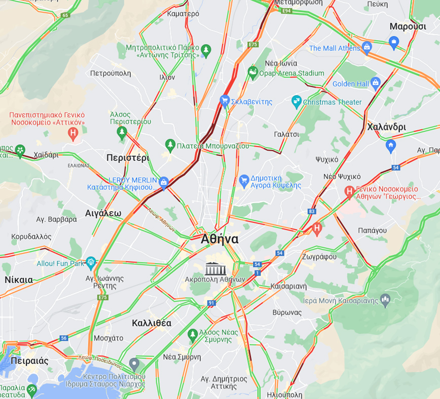Δείτε τον χάρτη με την κίνηση τώρα στους δρόμους…