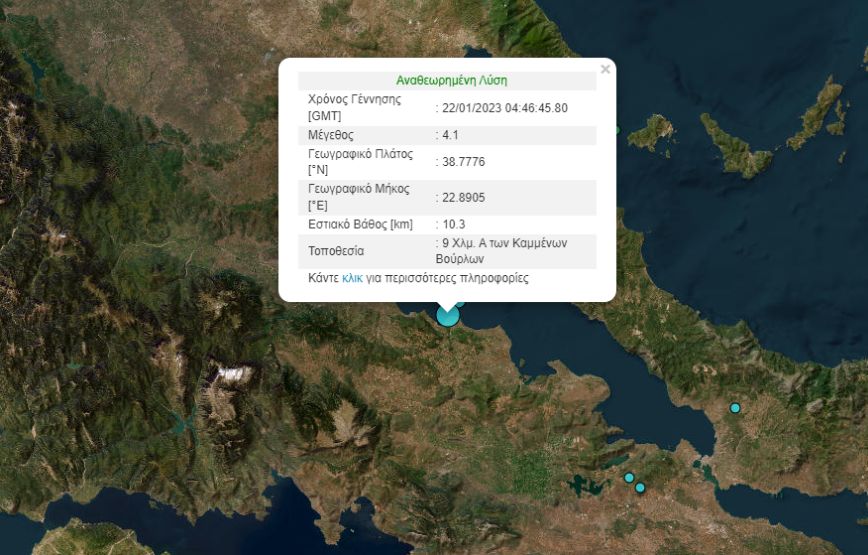 Σεισμική δόνηση μεγέθους 4,1 βαθμών της κλίμακας Ρίχτερ σημειώθηκε λίγο στις 06:46 στα Καμένα Βούρλα, σύμφωνα με το Γεωδυναμικό Ινστιτούτο του Εθνικού Αστεροσκοπείου Αθηνών.