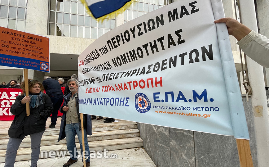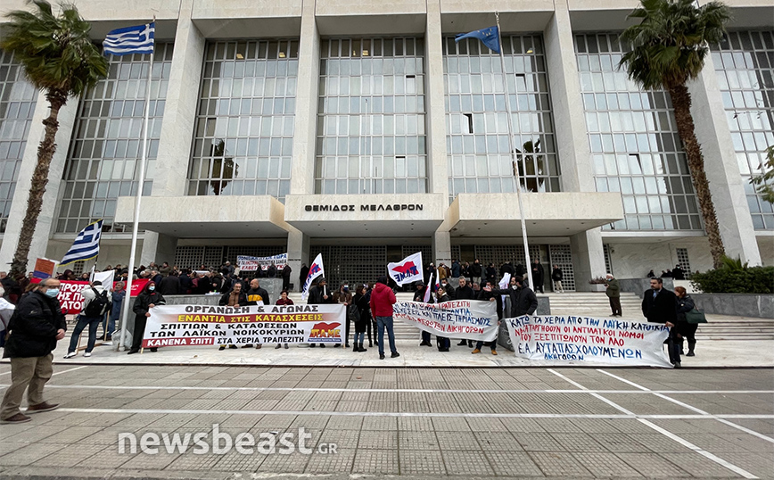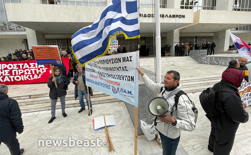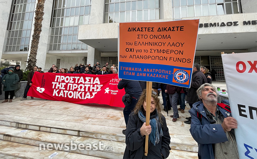Συγκέντρωση διαμαρτυρίας πραγματοποιείται έξω από τον Άρειο Πάγο, μετά από καλέσματα του ΣΥΡΙΖΑ-ΠΣ, του ΠΑΜΕ και οργανώσεων, καθώς η Ολομέλεια συνεδριάζει για τη δυνατότητα των εταιρειών διαχείρισης να επισπεύδουν πλειστηριασμούς και κατασχέσεις για λογαριασμό των funds.