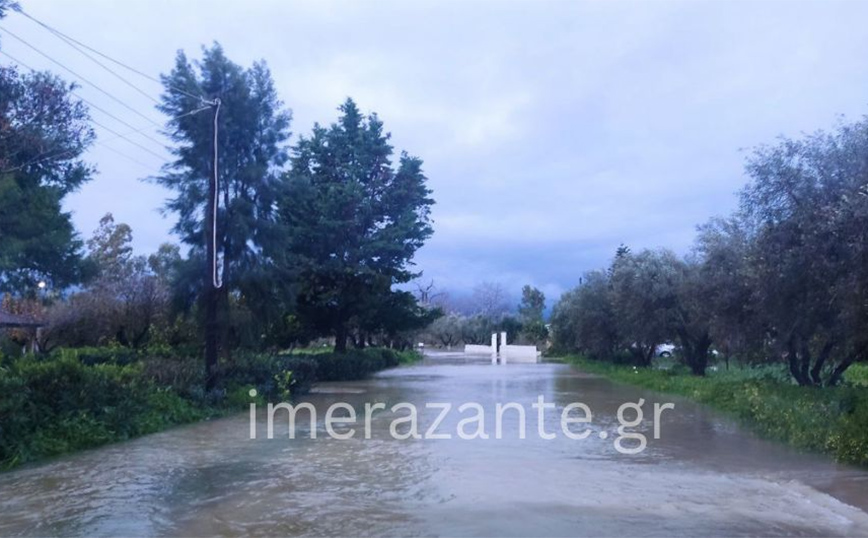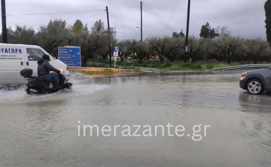 Ακόμα η τεράστια ποσότητα βροχής που έπεσε στη Ζάκυνθο μετέτρεψε τους δρόμους σε απέραντα ποτάμια, με αποτέλεσμα να γίνουν απροσπέλαστοι για τα αυτοκίνητα.