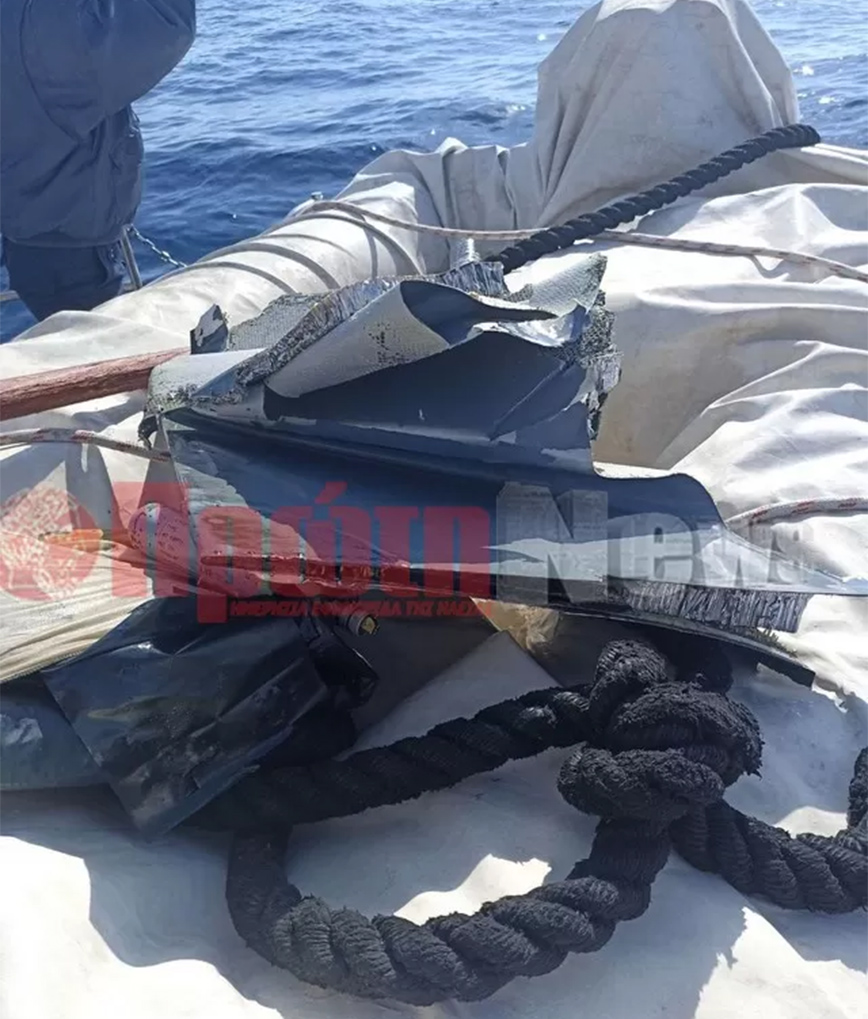 Τις πρώτες φωτογραφίες από τα συντρίμμια του διθέσιου μαχητικού αεροσκάφους F-4 της Πολεμικής Αεροπορίας, που κατέπεσε, σήμερα, Δευτέρα, 30 Ιανουαρίου, στις 10:30 π.μ. σε θαλάσσια περιοχή 25 ναυτικά μίλια νότια της Ανδραβίδας, φέρνει στη δημοσιότητα η εφημερίδα «Πρώτη» στην Ηλεία.