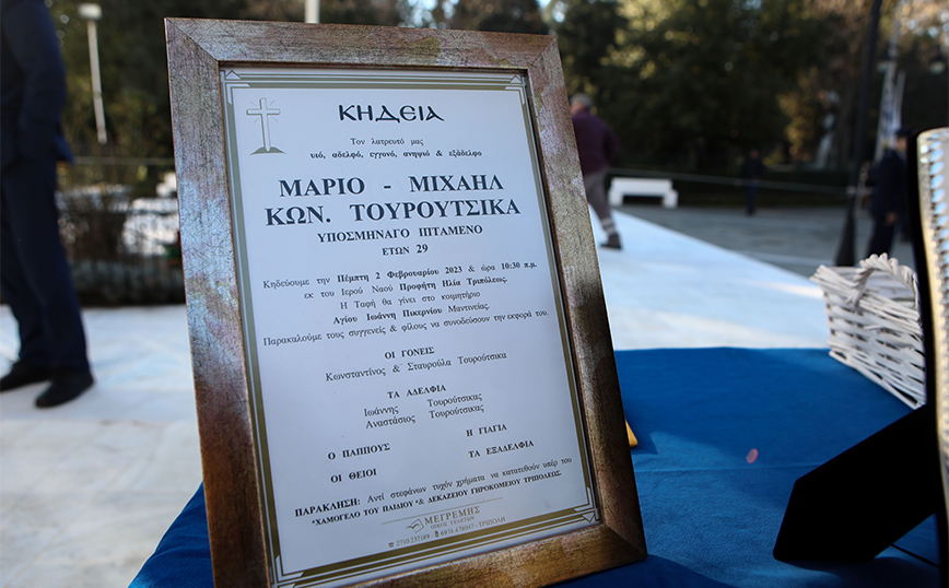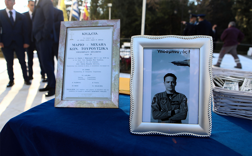 Στις 9:40 έφτασαν στην εκκλησία οι συγγενείς του υποσμηναγού Μάριου-Μιχαήλ Τουρούτσικα, καθώς και πολλοί συνάδελφοί του υποσμηναγού ενώ ο κόσμος αφήνει το δικό του μήνυμα στο βιβλίο συλλυπητηρίων.