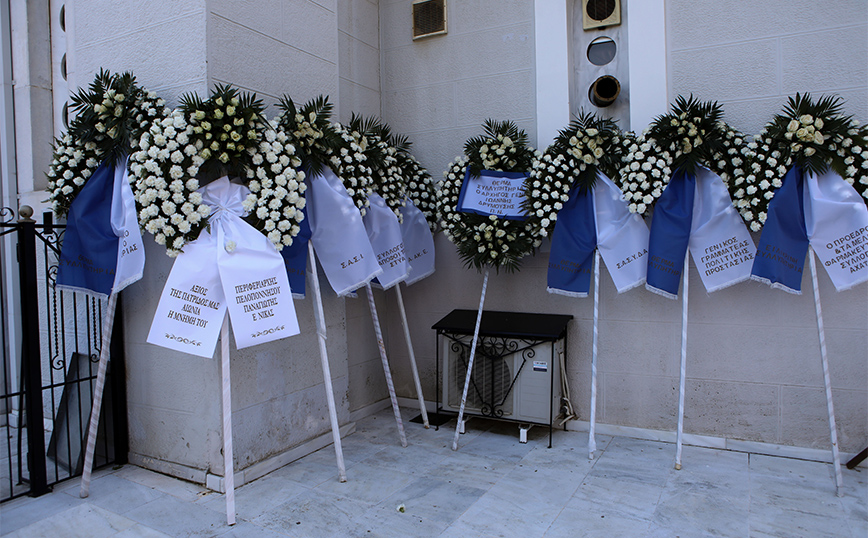 Ήδη από το πρωί έξω από την εκκλησία βρίσκεται άγημα της Πολεμικής Αεροπορίας, ενώ, σύμφωνα με το arcadiaportal.gr, περιμετρικά του ναού έχουν τοποθετηθεί στεφάνια από λευκά λουλούδια, στολισμένα με μπλε και λευκές κορδέλες.