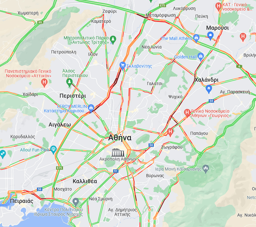 Δείτε αναλυτικά την κίνηση τώρα στους δρόμους της Αττικής: